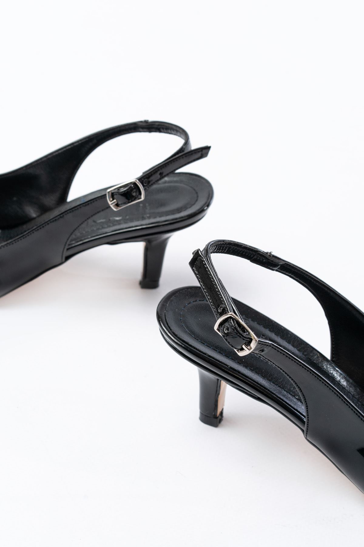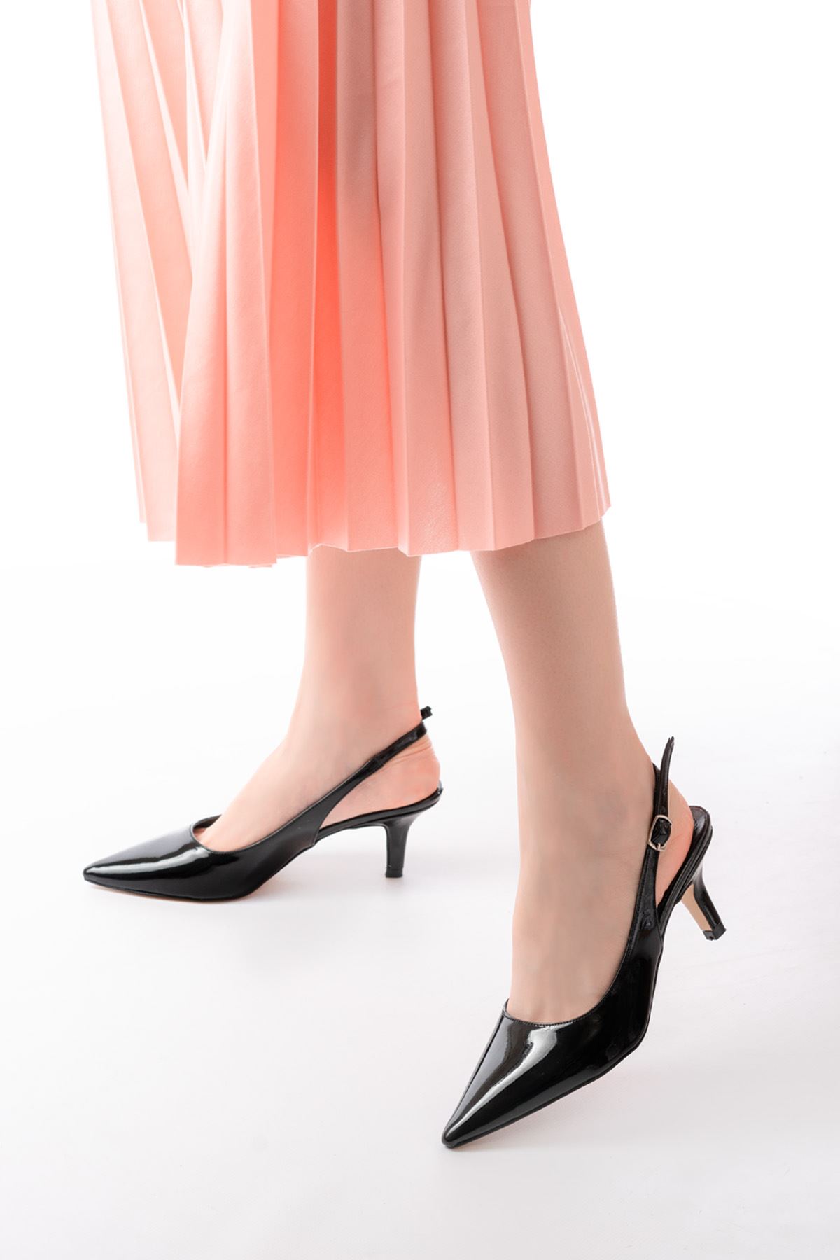 ST-1152 Siyah Rugan Günlük 7 cm Topuklu Kadın Ayakkabı