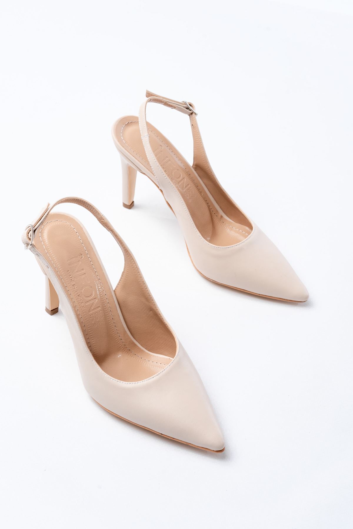 ST-1153 Bej Günlük Arkası Açık 9 cm Topuklu Kadın Ayakkabı
